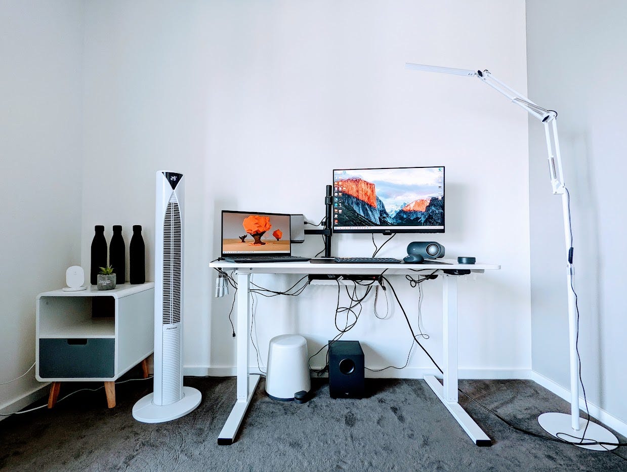 #53 You can have an easy-to-maintain white aesthetic. This is my mostly-white WFH setup here and I think it will be incredibly high maintenance if I tried it in India: